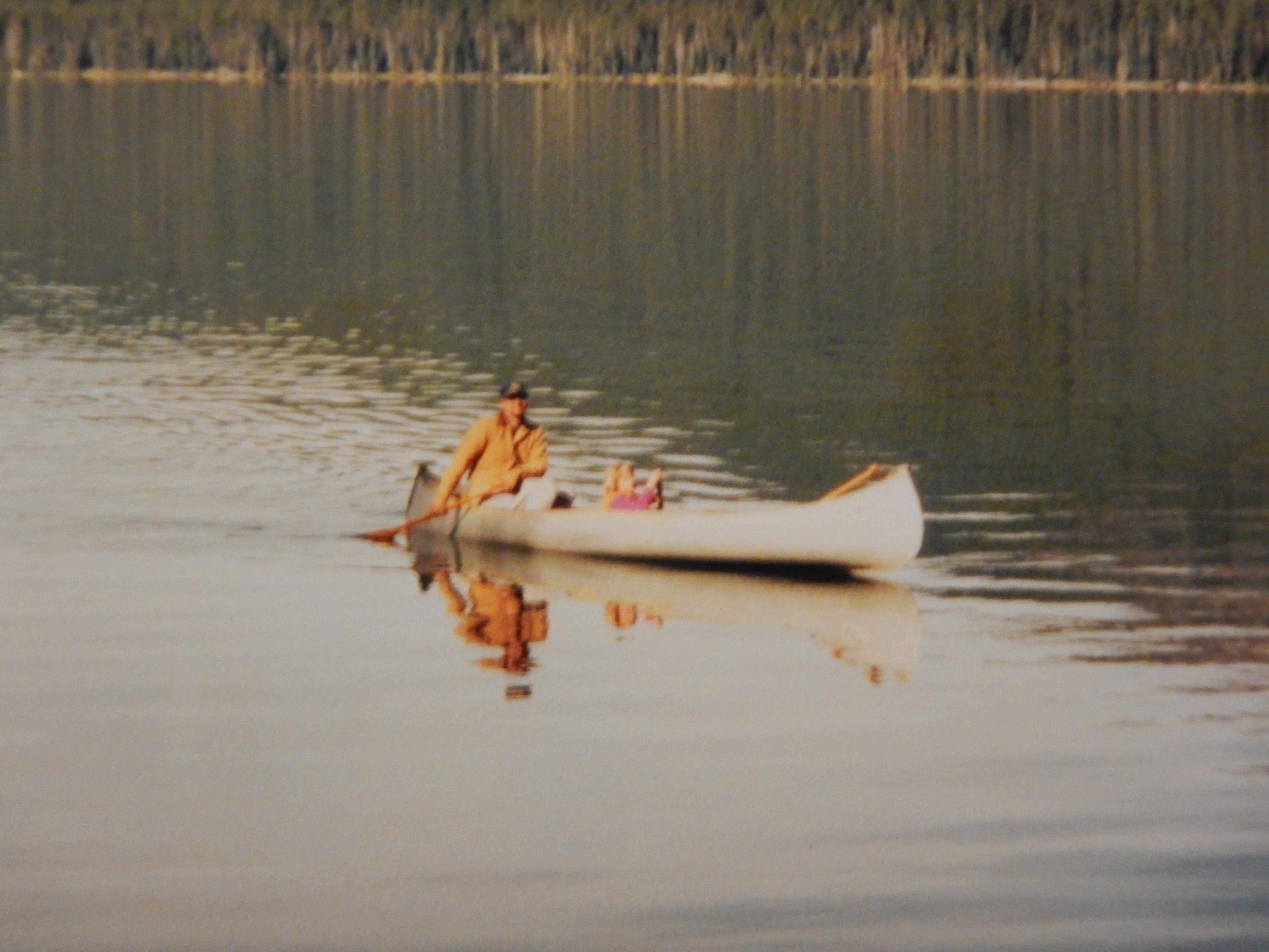 We canoed to the camp site and set up our tent just in time for a huge thunderstorm to show up just as the light was fading in the evening. We got into our tents and our tired children went right to sleep. We started to doze but were soon wide awake as the storm arrived in earnest. About halfway through the storm the bottom of our tent began to feel like a waterbed. We had pitched it in a bowl-shaped depression that was filling with water. I wasn’t keen on testing our tent’s waterproofing prowess so I put on my rain coat, grabbed the flashlight, and a children’s plastic canoe paddle that we had brought so my daughters could help paddle the canoe.
