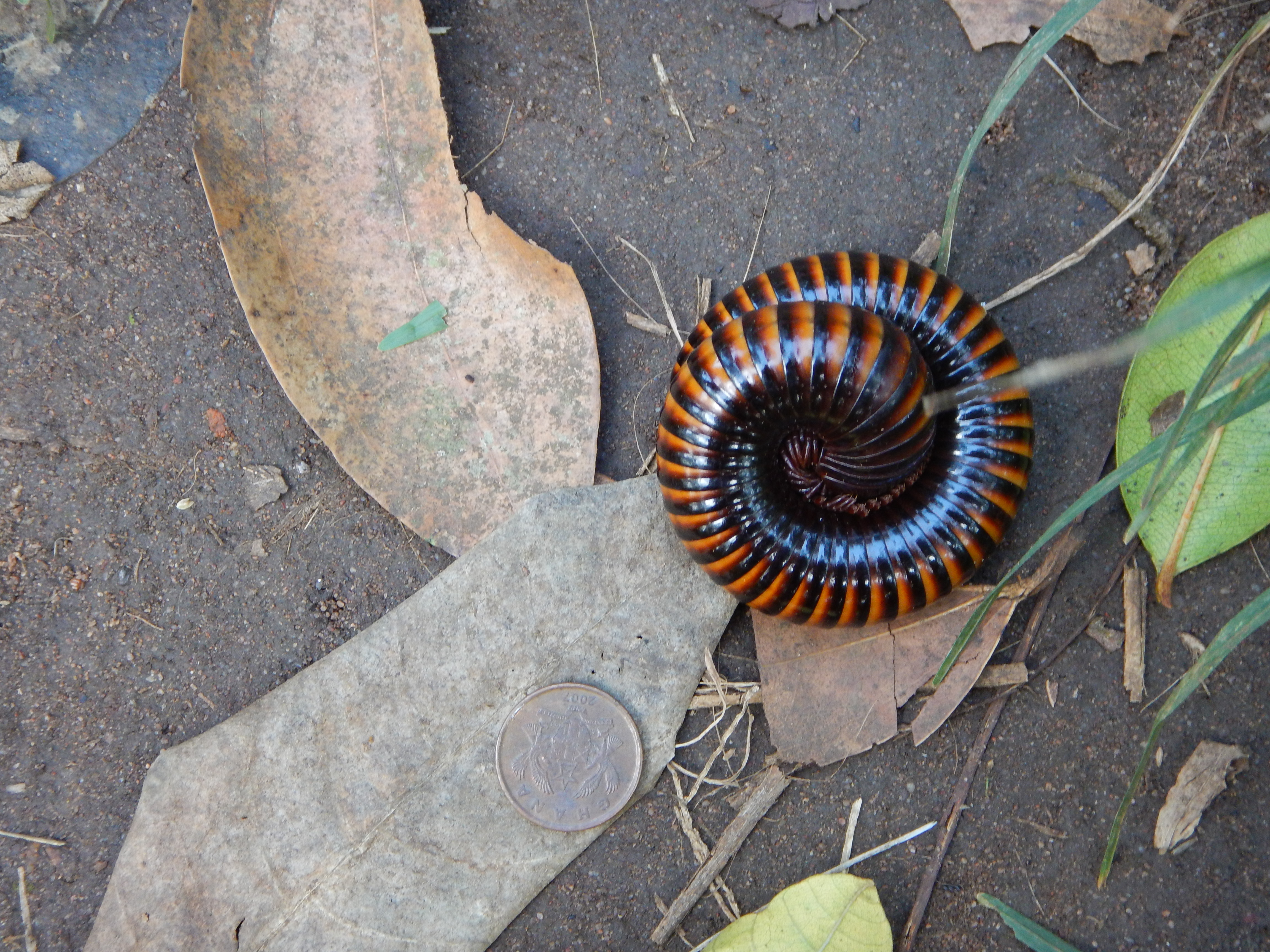 I am not sure why resources are not available to maintain the Aburi gardens but they have become overgrown and neglected in some locations and many of the buildings and pathways look like they could use some refurbishing and renovating. Just like in the book, beauty and bounty are present but they are sometimes hidden by neglect. The gardens remain very beautiful for those who have the time, and a knowledgeable guide, to help them see the wonder that is all around. We saw trees that bear many of the spices we use for cooking like allspice, nutmeg, cocoa, and cinnamon. The trees were interspersed with flowers and a few interesting critters like a large millipede crossed our path.