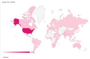 In 2020, the Walking on Water blog was visited by people from 118 counties from Antigua to Zimbabwe, with 5,767 pages viewed and 4,315 visits.