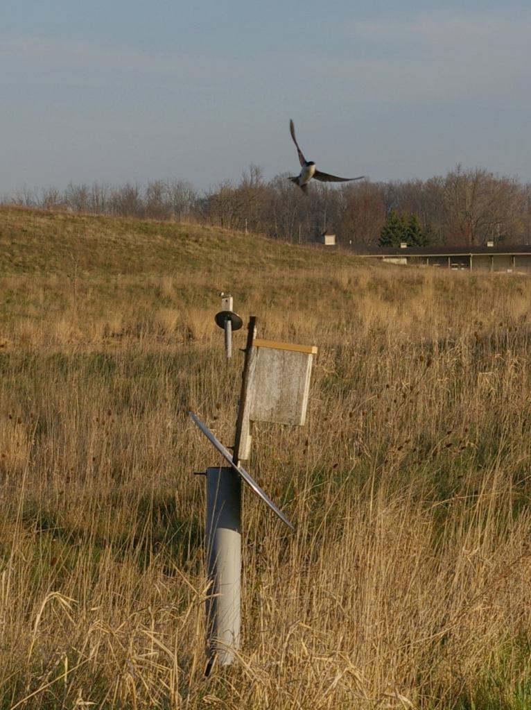 Tree swallow with and nesting box