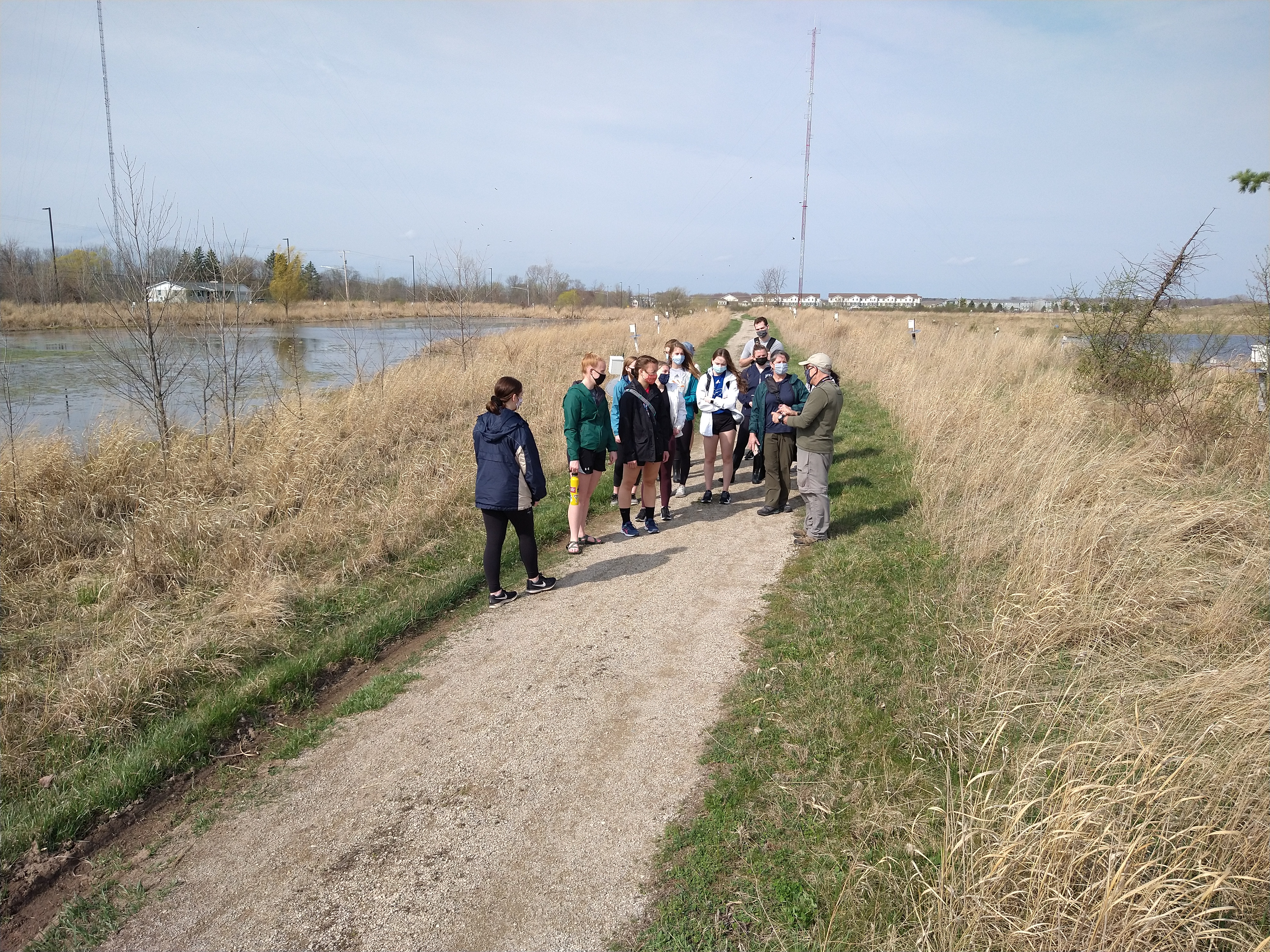 Students learning about tree swallow along the road where we encountered the baby turtle